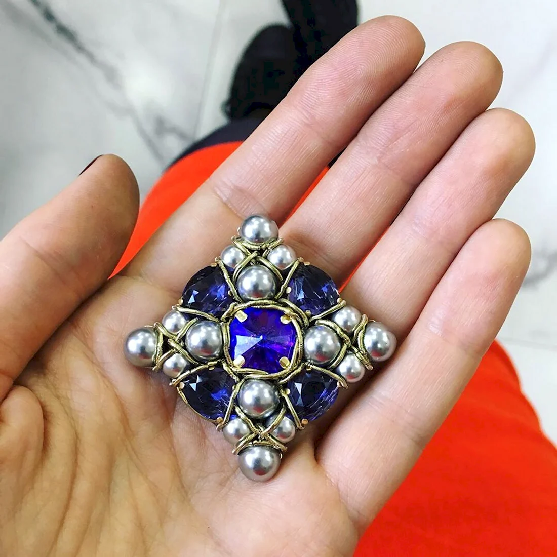 Брошь с жемчугом Сваровски 2018
